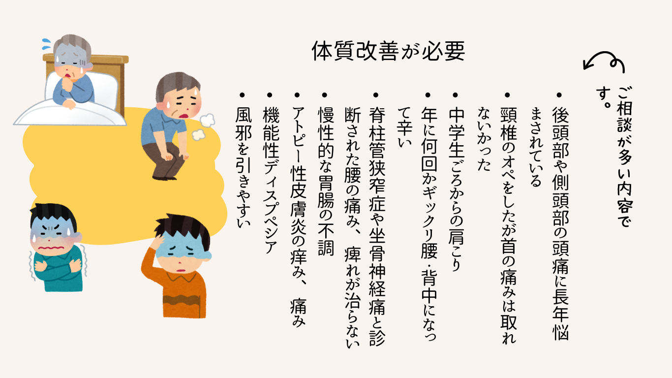 体質を改善し、症状が出る必要が無い身体へ