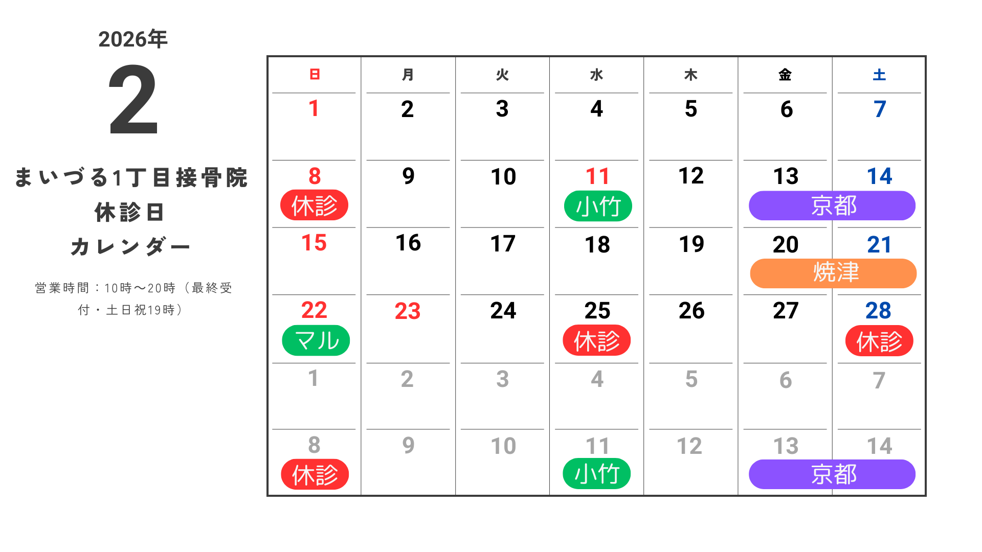 詳しくは当ページ上部の施術カレンダーをご確認ください